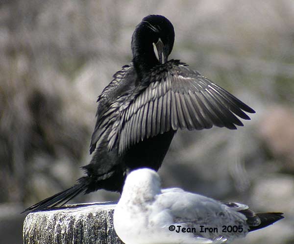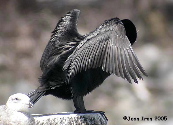 Above: Double-crested Cormorant with white crests at Wheatley Harbour near Point Pelee, Ontario, 5 May 2005 |