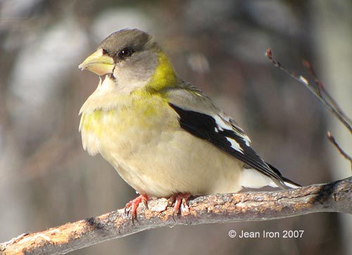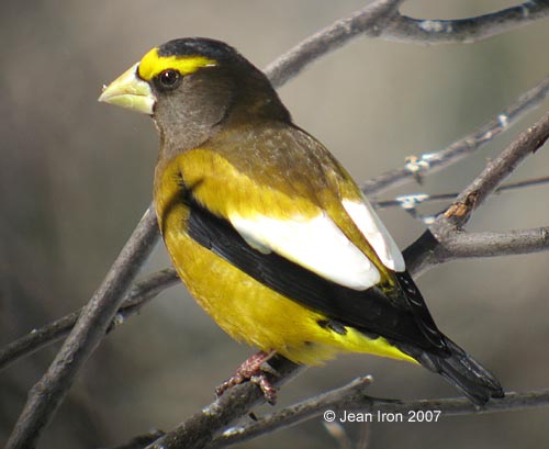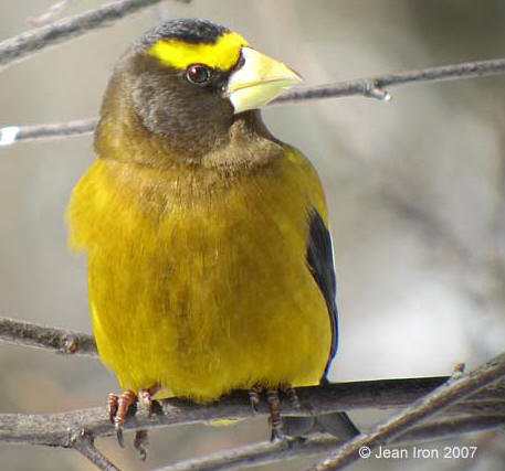 Evening Grosbeak at the Visitor Centre feeder in Algonquin Park on 23