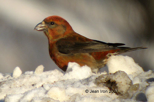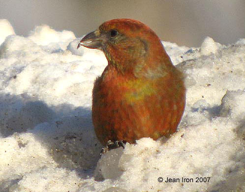 Red Crossbills and Pine Siskins were eating salt and grit. |
