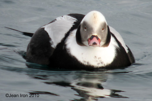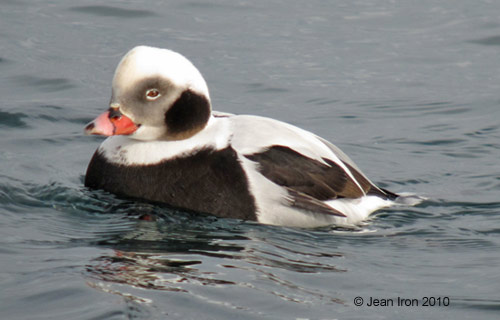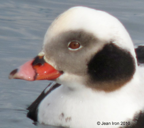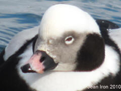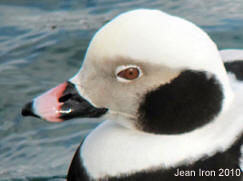 pink on bills of three adult male Long-tailed Ducks. 28 February