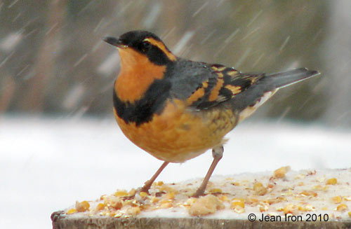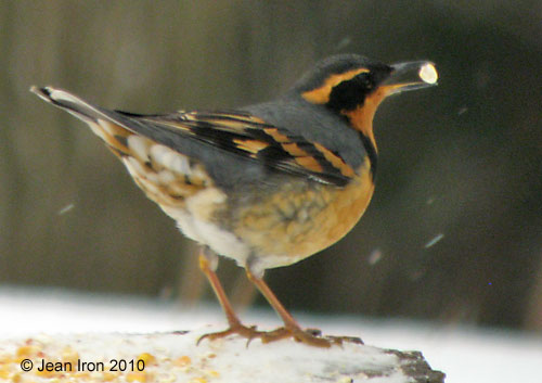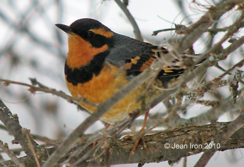 Thrush in definitive basic plumage. Varied Thrushes have one molt a