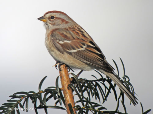 American Tree Sparrow on yew bush. 10 February 2011. |