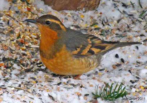 Varied Thrush comes regularly to Elmer's