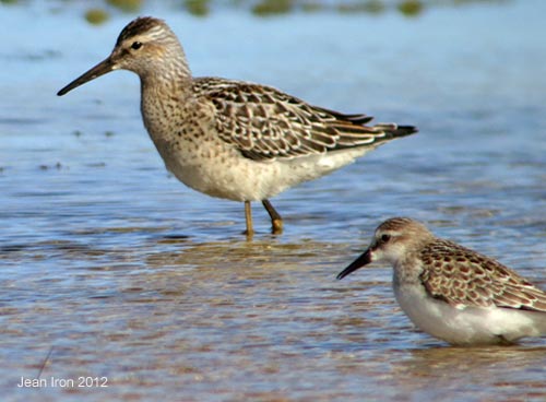Sandpiper with juvenile Semipalmated Sandpiper on 28 August 2012 |