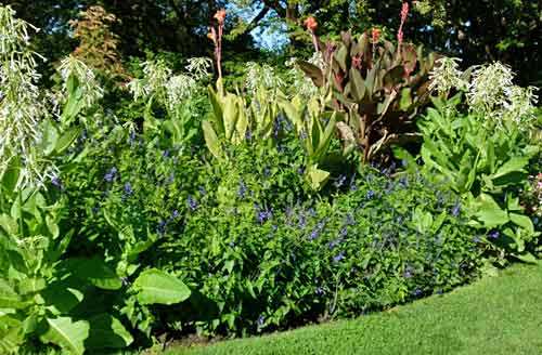 (tall with orange flowers), "Black and Blue" Salvia Salvia