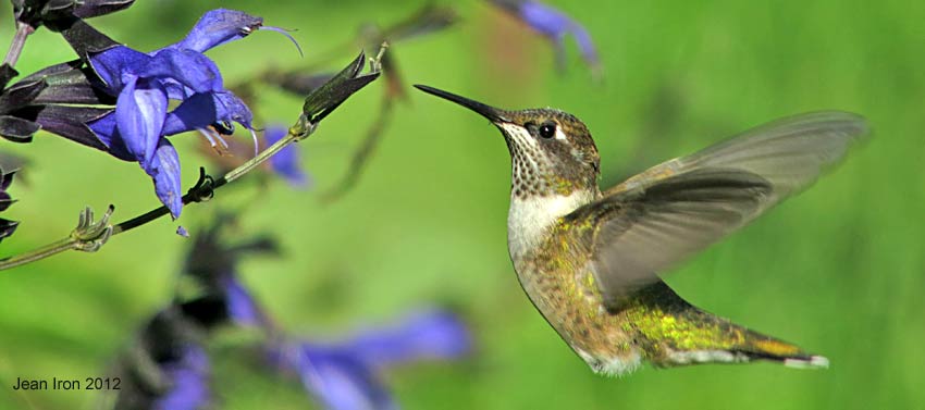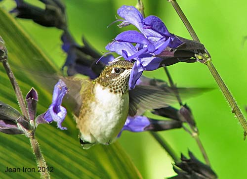 Hummingbird on "Black and Blue" Salvia Salvia guaranitica at Rosetta McClain Gardens in