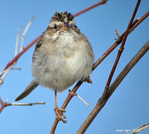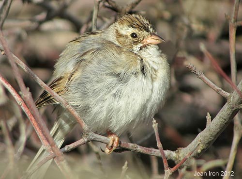 Clay-colored Sparrow was preening and fluffed up. Point Pelee on 6 May 2012
