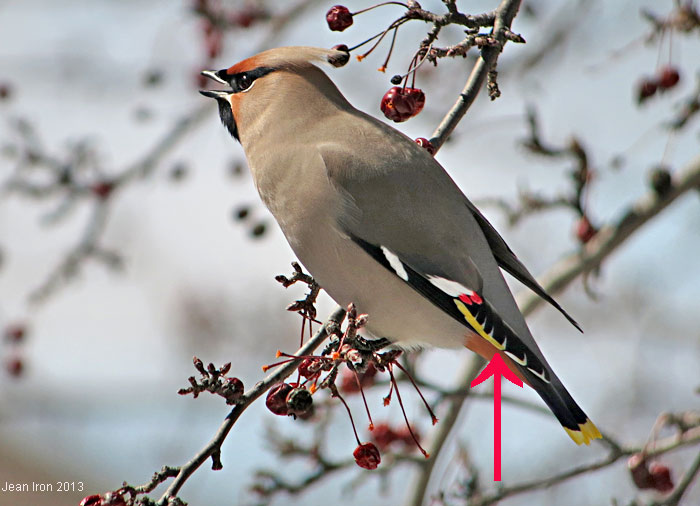 Photo 1. Adult Bohemian Waxwings differ