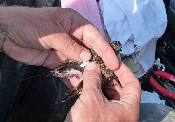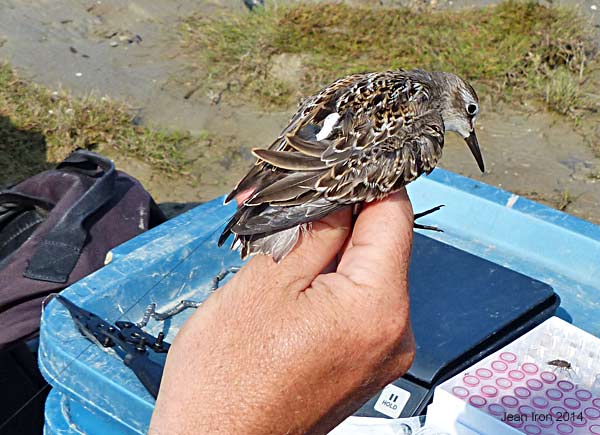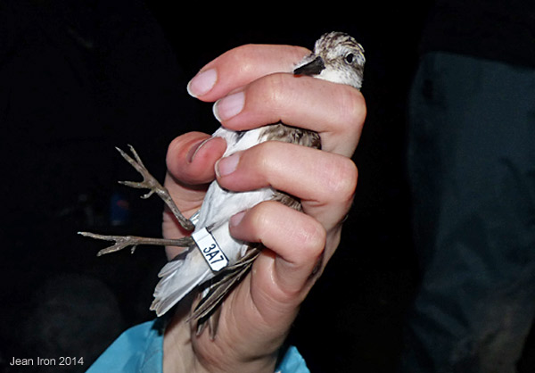 Sandpiper carries a white flag signifying it was banded in Canada. 1