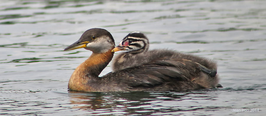 While I watched the Red-necked Grebes diving for fish, the young bird climbed on the back of a parent. Colonel Sam Smith Park on Lake Ontario, Toronto, 15 September 2014.