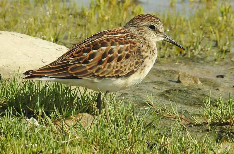 in worn breeding plumage and molting White-rumped Sandpiper on 11