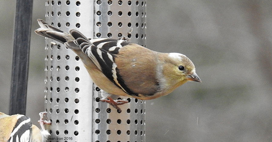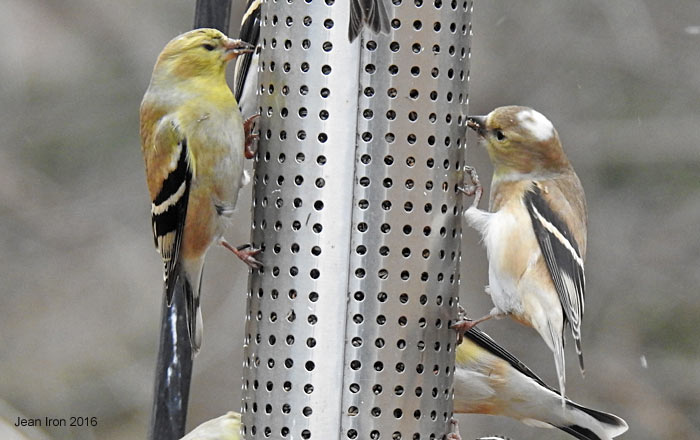 Here it is with normal American Goldfinch, which is starting to molt into breeding plumage. 5 February 2016