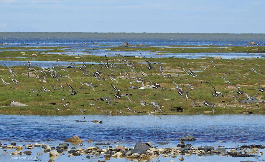 Molting adult White-rumped Sandpiper. Thousands of White-rumped Sandpipers feed and molt on James Bay. It may be the most important fall staging area in North America for this sandpiper. Photo by Isabel Apkarian.