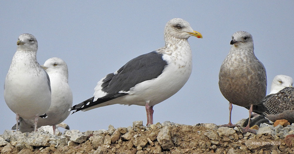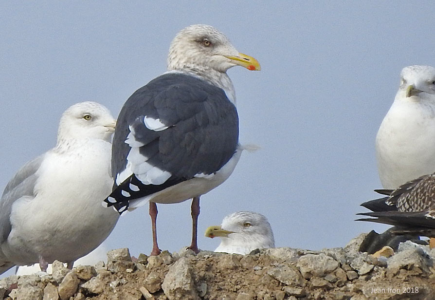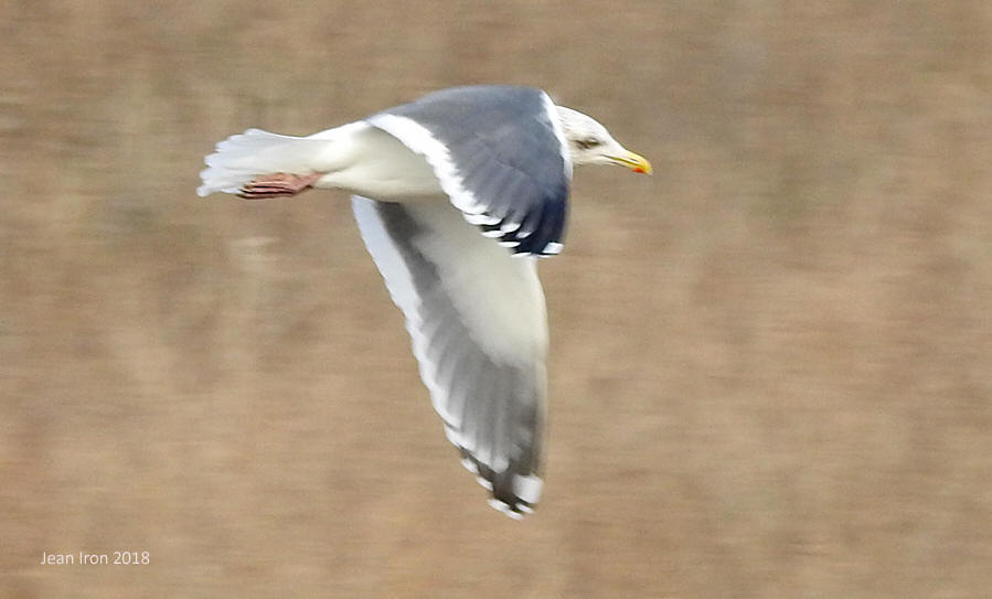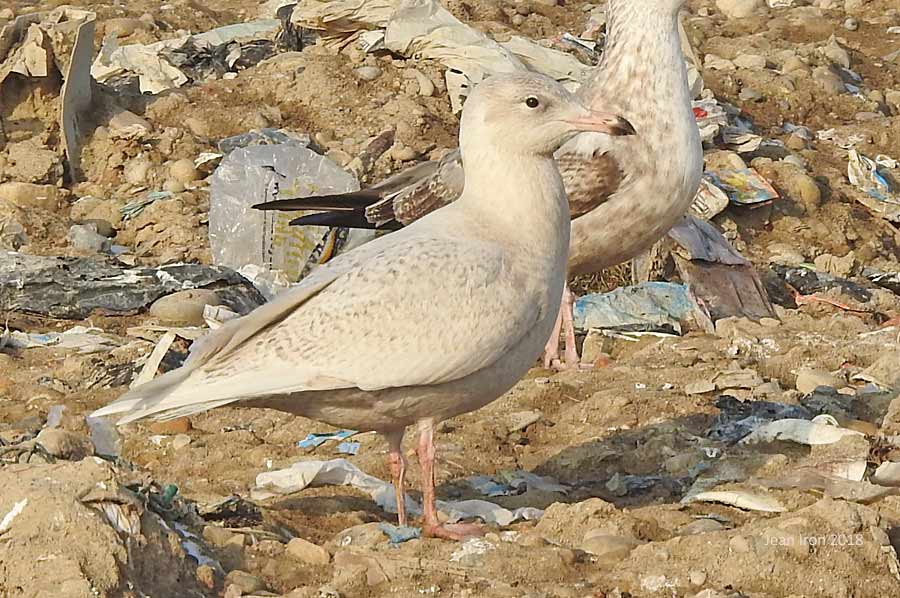 Gull at Brantford Landfill showing wide tertial crescent, pink legs