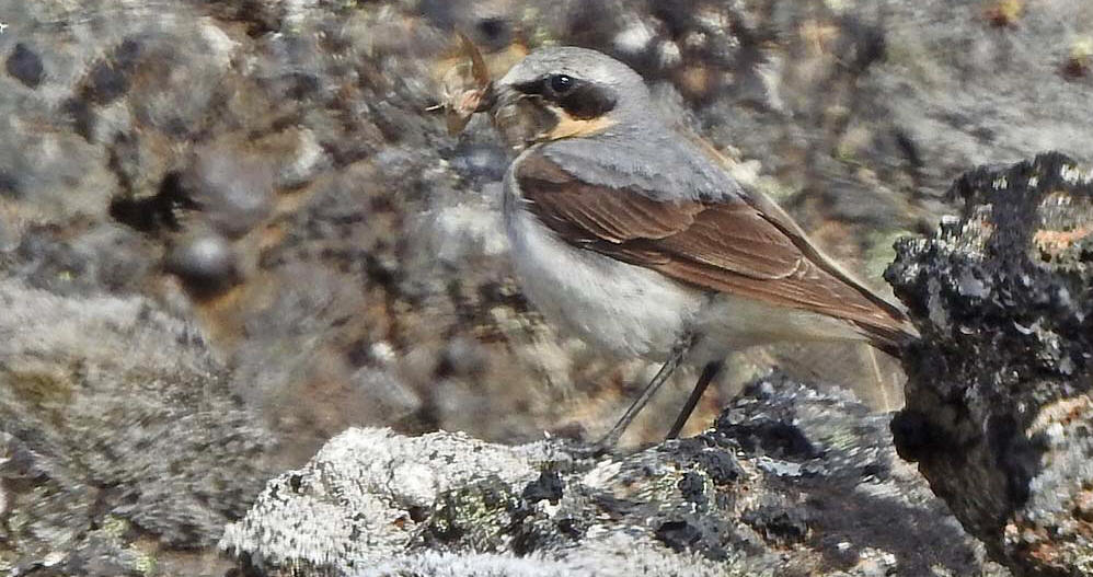Northern Wheatears. This individual is carrying food. Hveravellir on