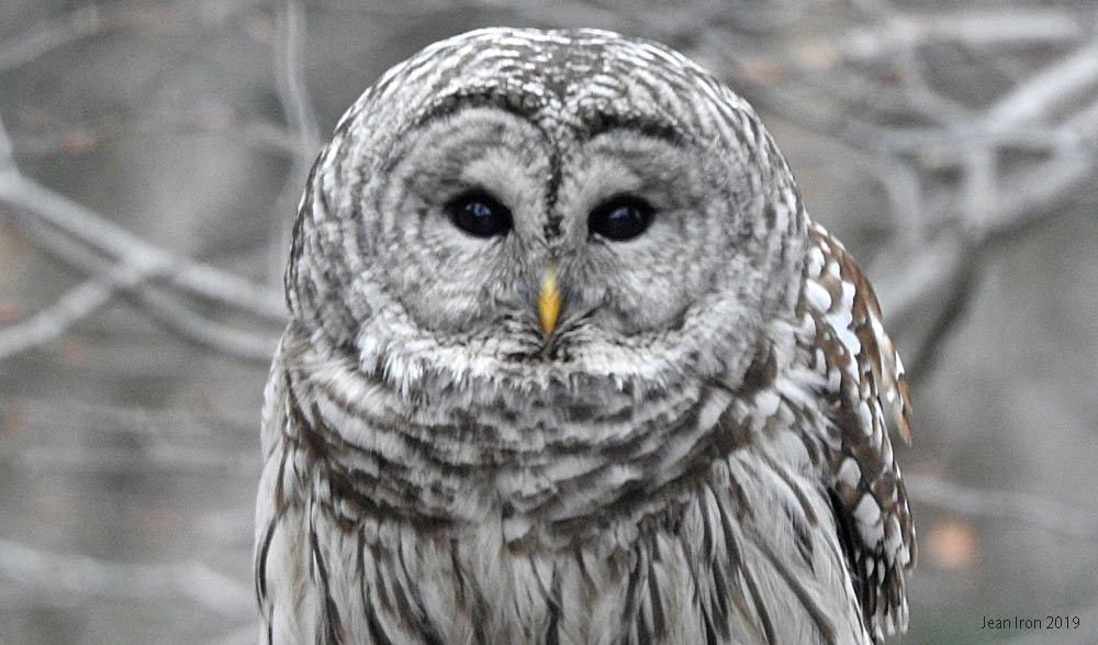VIDEO: A Barred Owl perched at our feeders in Toronto on 14 January 2019. A squirrel climbed up to check out the sleepy owl, almost touching it. Maybe the squirrel had never seen a Barred Owl before because it showed no fear.