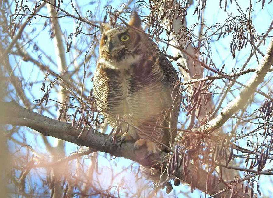 Beautiful Great Horned Owl in Toronto on 6 January 2019. Interesting plumage.