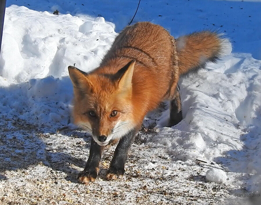 VIDEO: A Red Fox showed up at our bird feeders in Toronto. It looks to be in great shape, but it was hungry and ate bits of suet that had fallen down from the feeder above. Toronto on 21 January 2019..