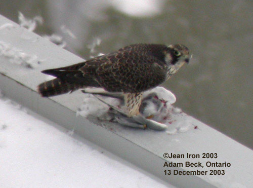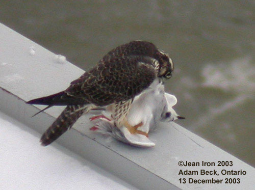 Juvenile Peregrine Falcon eating Bonaparte's Gull.