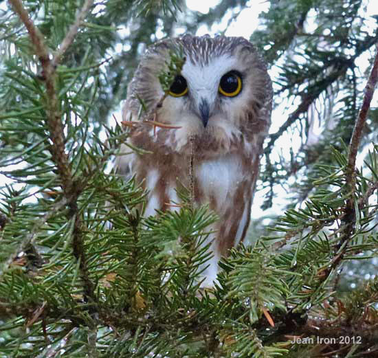 Northern Saw-whet Owl in pouring rain on the Toronto Christmas Bird Count in Tommy Thompson Park on 16 December 2012.