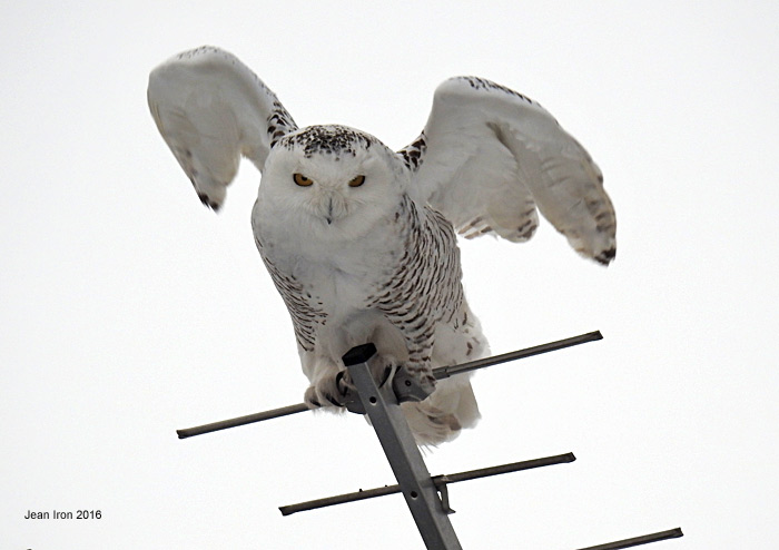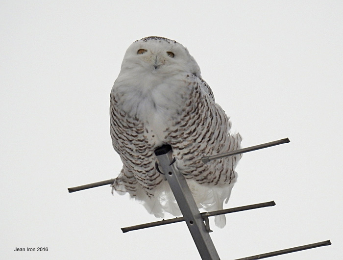 Same Snowy Owl on a roof antenna late afternoon on 19 February 2016