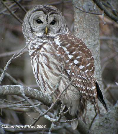 This Barred Owl was at Cranberry Marsh in Whitby, Ontario, on 3 November 2004.