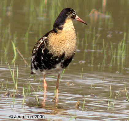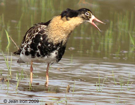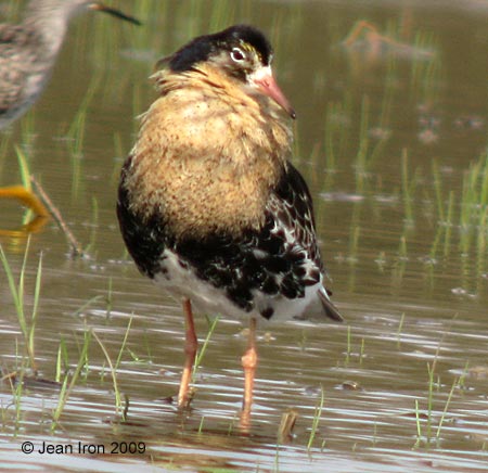 The Ruff had long orange neck feathers with faint barring and black head tufts.