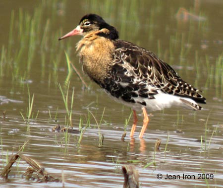 Male Ruff plumages are highly variable, some having black or white or rufous or chestnut ruffs.
