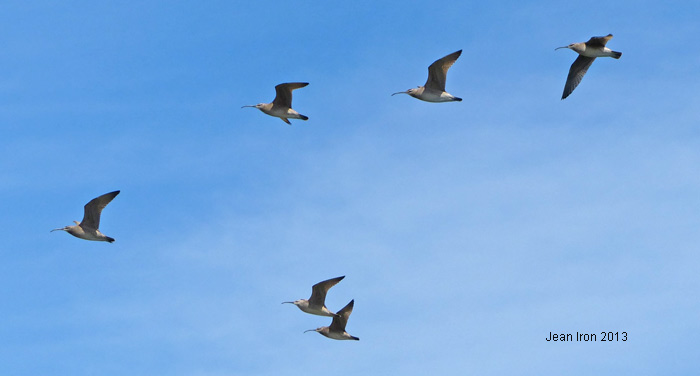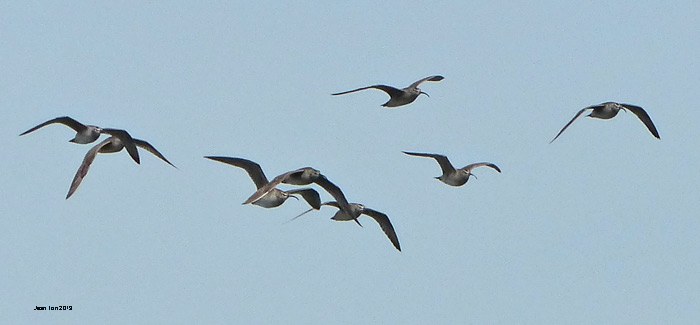 Whimbrels at Colonel Sam Smith Park in Toronto, with most passing us