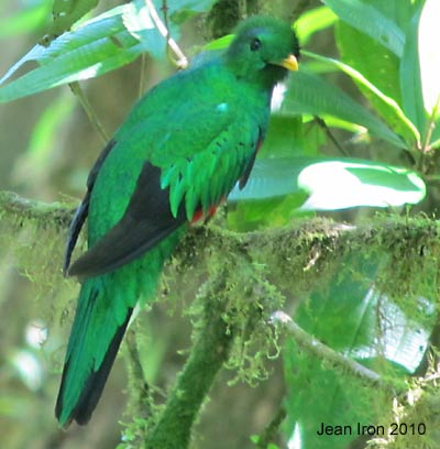 Resplendent Quetzal building a nest in a nest box at Selvatura. |