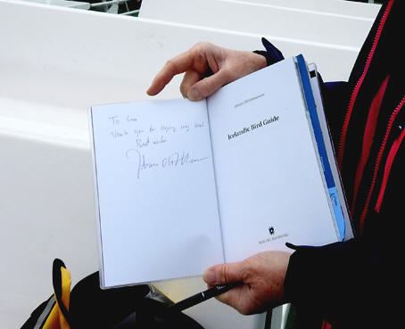 to Jóhann Óli Hilmarsson (left), author of Icelandic Bird Guide