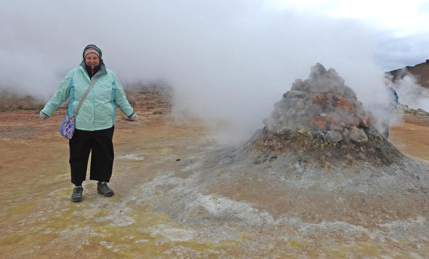bubbling mud pots and fumaroles. A strong smell of sulphur pervades