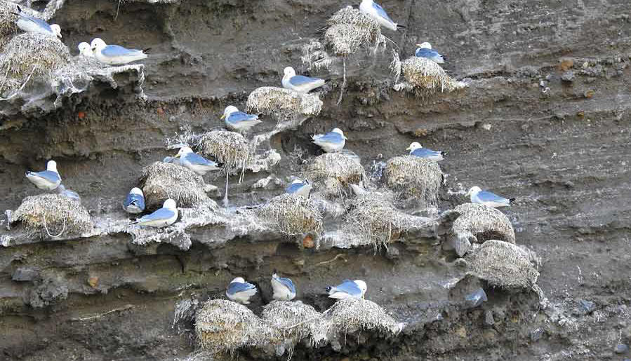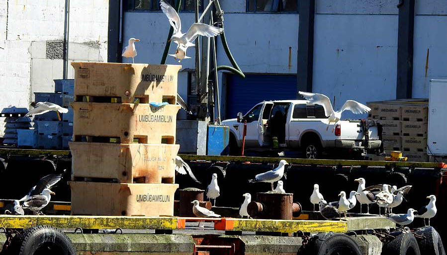 Herring Gulls on fish processing plant roof. Heimaey on 22 June