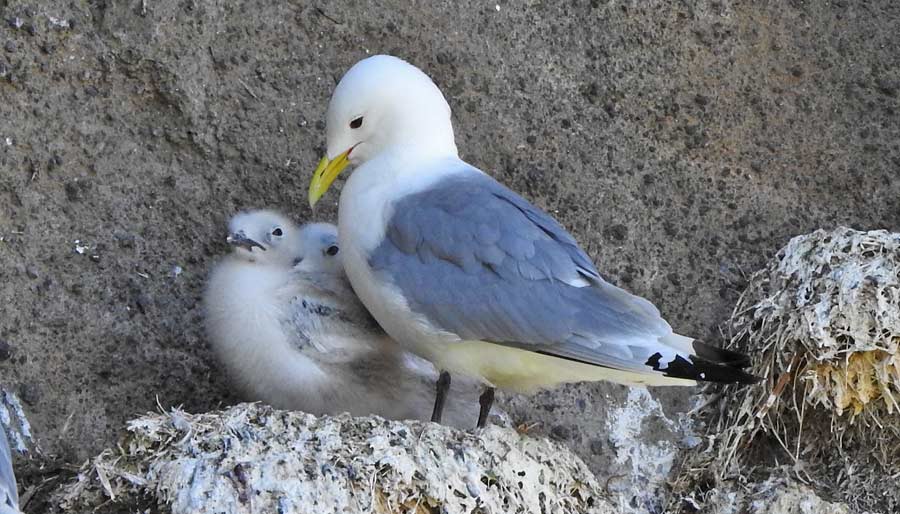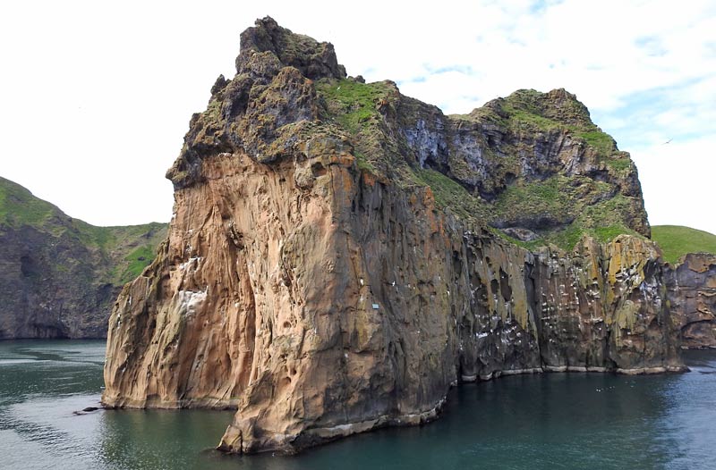 on vertical cliffs in Heimaey. Westman Islands on 22 June 2019.