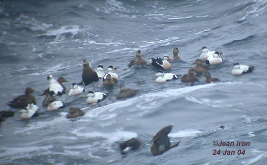 Spot the King Eider among the Common Eiders in the swells at Cape Spear.