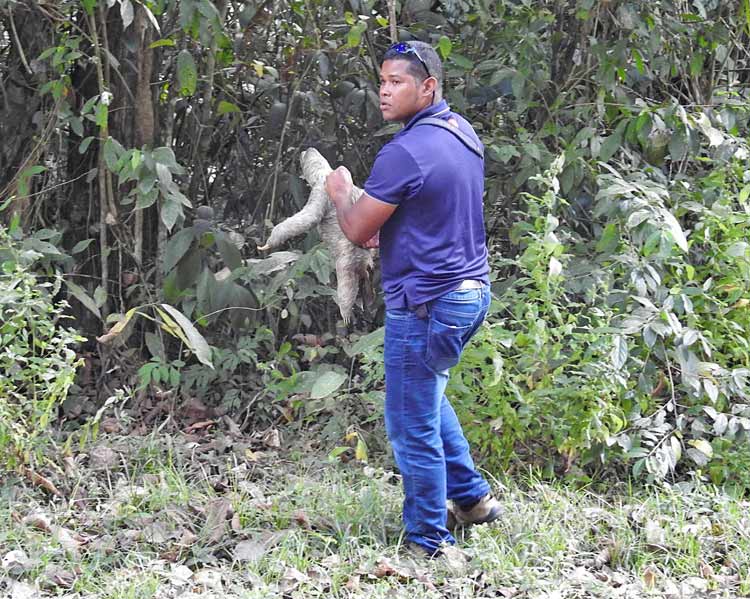 female Brown-throated Three-toed Sloth off the main road. We hope it
