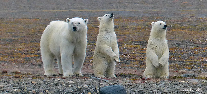 Female Polar Bear with two cubs on Prince of Wales Island in the